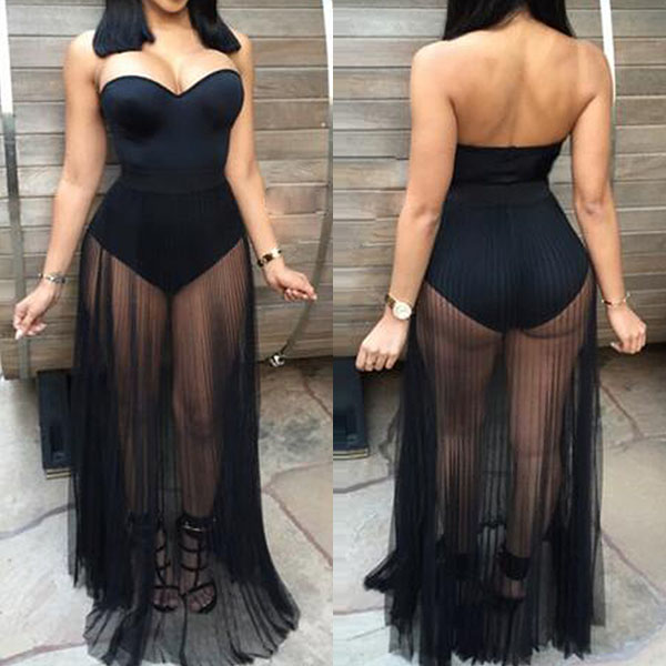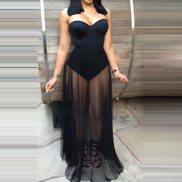see-through gauze spliced hem design makes this dress look so sexy and seductive. For any
