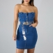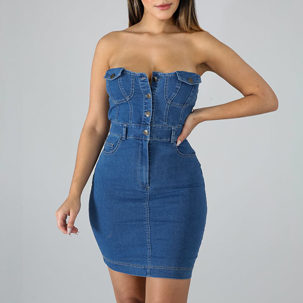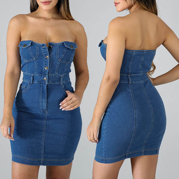 Sexy Strapless High Waist Slim Fit Denim Dress