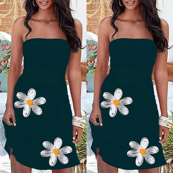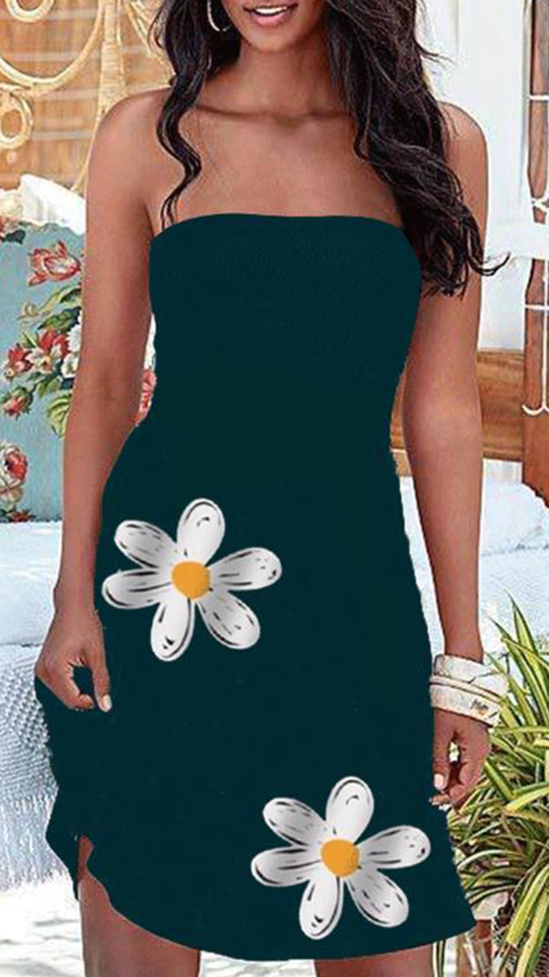 Sexy Strapless High Waist Slim Fit Flower Printed Dress