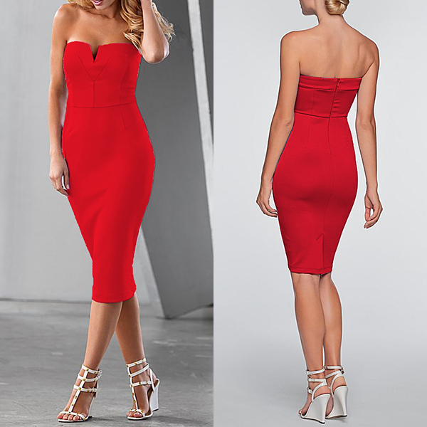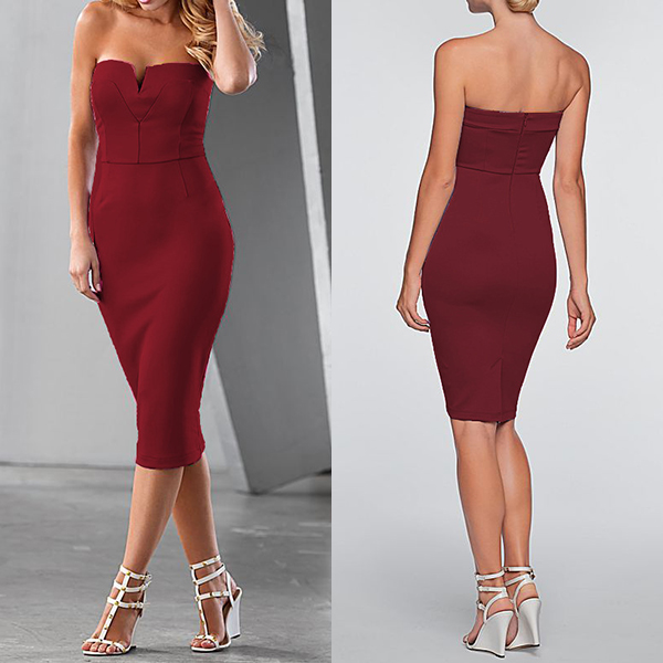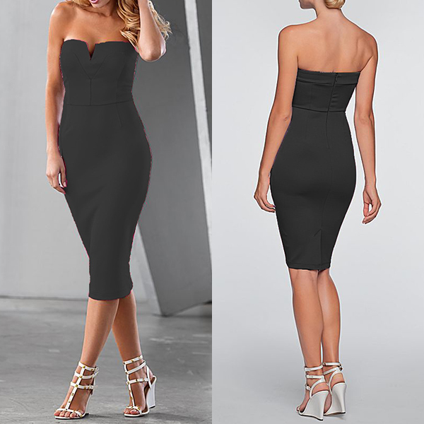You don't need to worry about what to wear for tonight's cocktail party if you have this dress on hand. Strapless style,