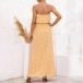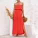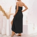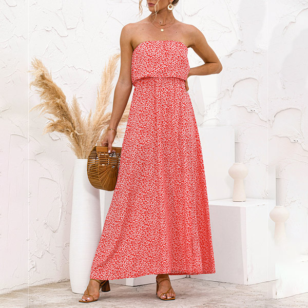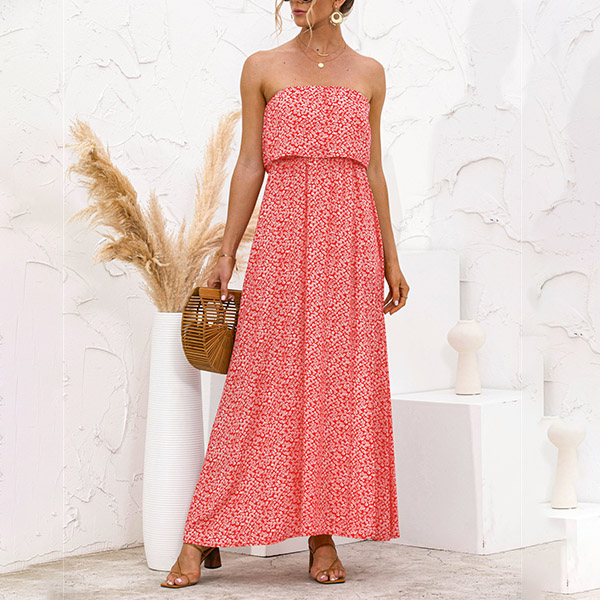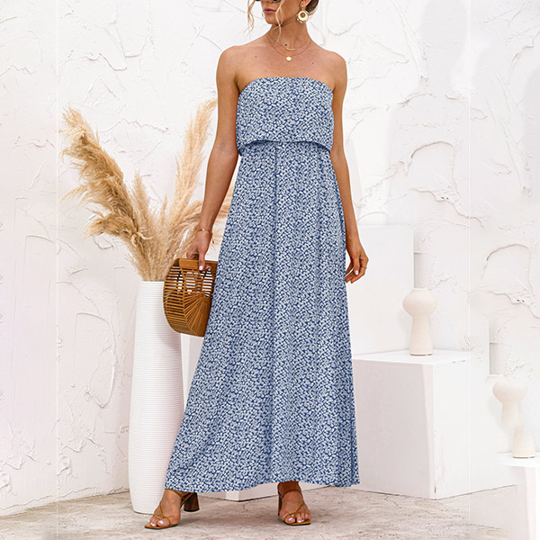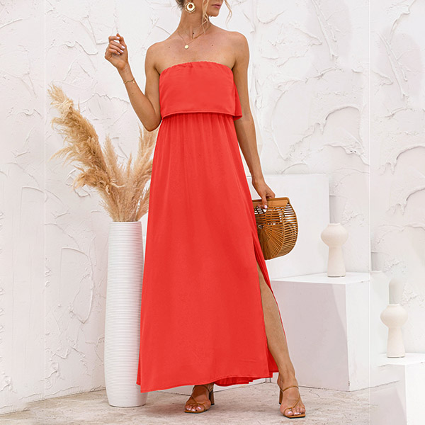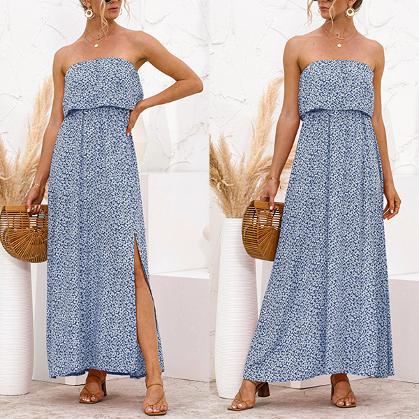 As for a sexy and charming look,you can just have a try this dress. Strapless style,with high waist,slit hem and a maxi length,this dress not only can exude your sexy and alluring side,but also can showcase your slender figure. On these sun-soaked summer days,you can just match with a sweet straw hat and bohemian style necklace to gain more eyes.