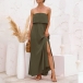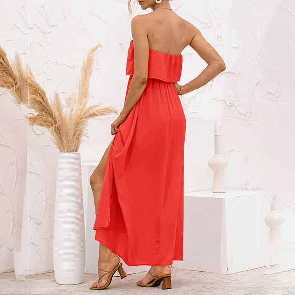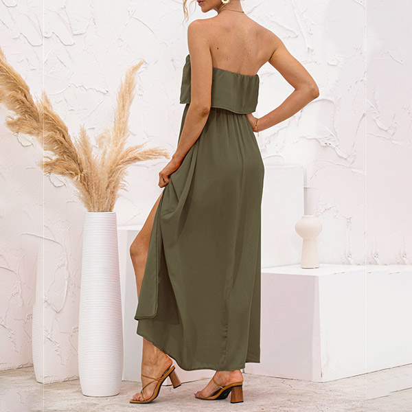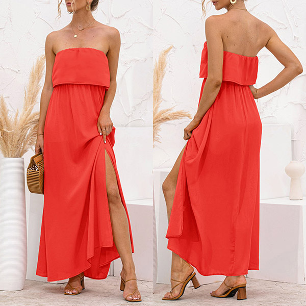 Sexy Strapless High Waist Slit Hem Dress