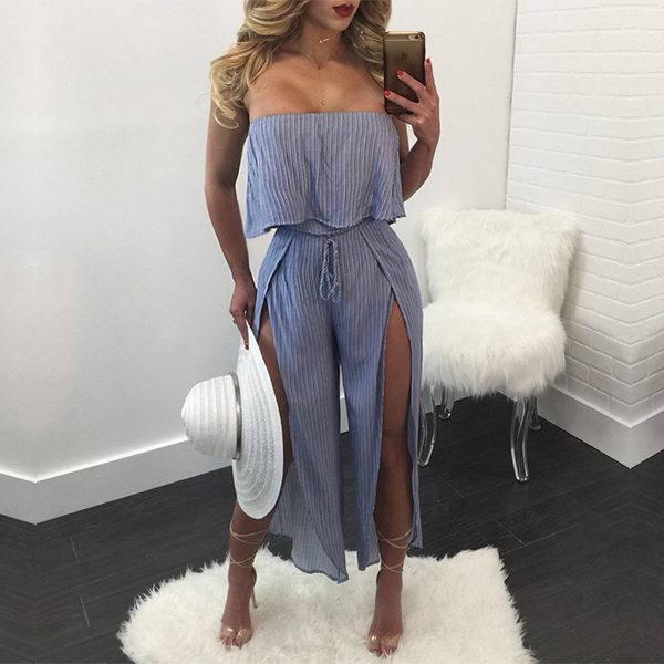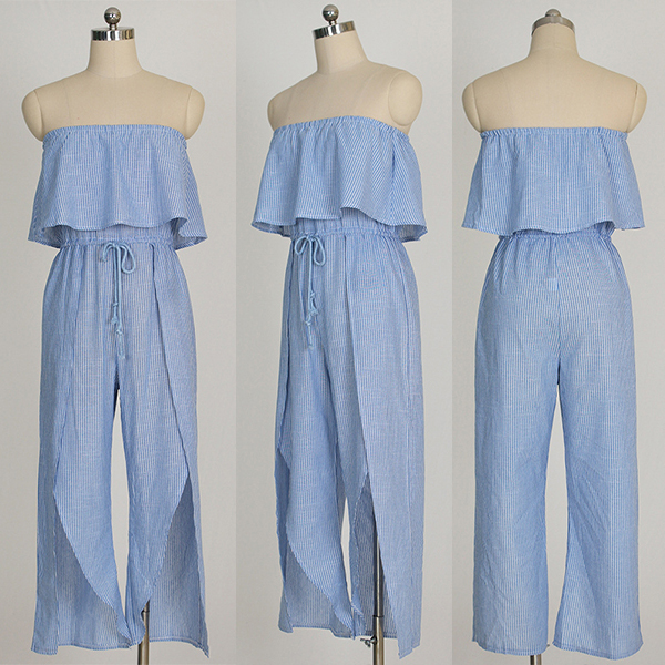 There is no doubt that all the eyes would be focused on you once you slip into this striped jumpsuit. Strapless style,