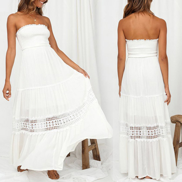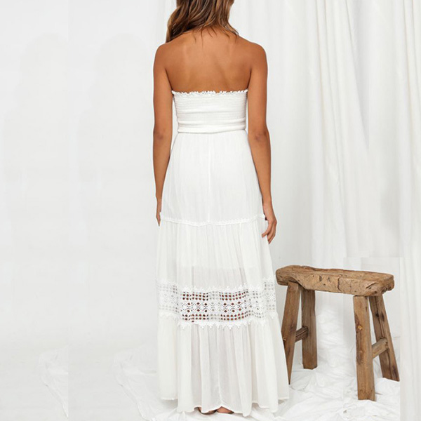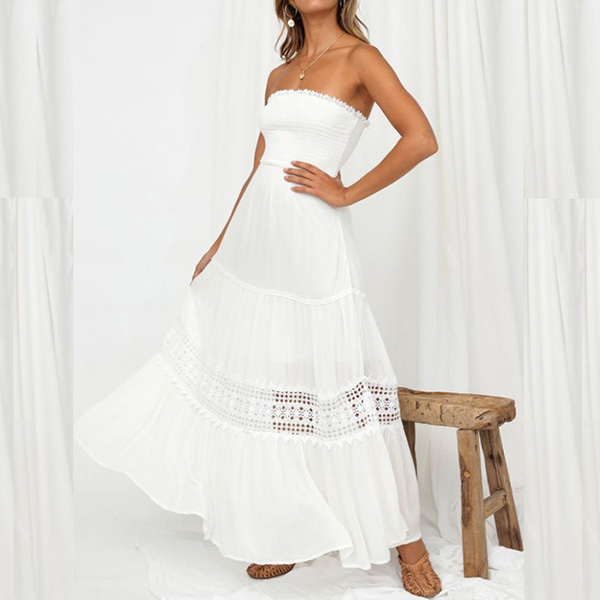 Sexy Strapless High Waist Solid Color Hollow Out Party Dress