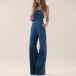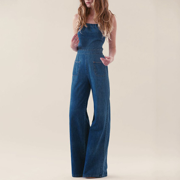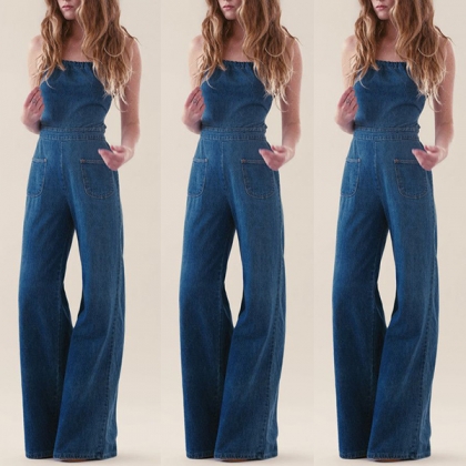 You can easily arouse a splash when you wear this denim jumpsuit. Strapless style,with high waist and wide-leg silhouette design,which can better highlight your slender figure. When dressing up with your sexy heels and sparkle necklace,you can look more beautiful and stunning!