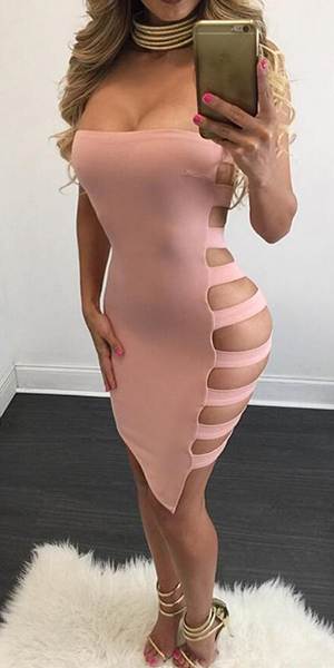 side hollow out design and a bodycon silhouette,sexy and sultry. If you are bold enough,you can flaunt