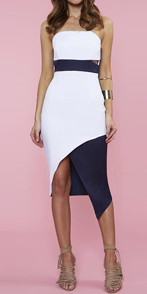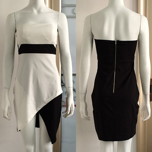 This dress features strapless style,with an irregular hem,sexy and charming. Its contrast color