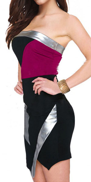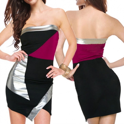 Strapless style,with an irregular hem and contrast color design,which make this dress look more sexy,charming