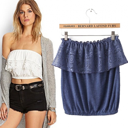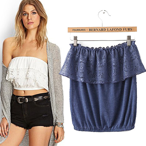 This crop tops can perfect show your sexy flavor and slender waist. Strapless style,lace spliced design