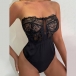 Sexy Strapless Lace Spliced Lingerie Bodysuit