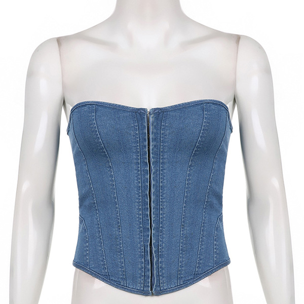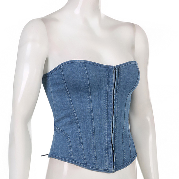 This Denim Corset Shirt is the perfect way to show off your sexy side. The strapless design and lace-up front give this shirt a flirty look, while the sweetheart neckline and denim fabric give it a sultry edge.