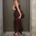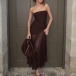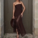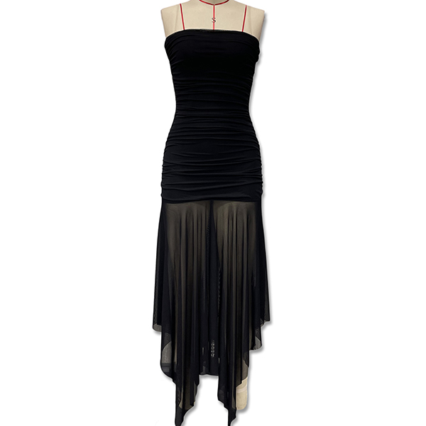 This elegant dress features confident strapless styling with sophisticated mesh construction and dramatic maxi length for contemporary ethereal sophistication. Perfect for elegant occasions, sophisticated styling, or contemporary romantic coordination.
