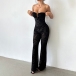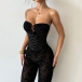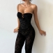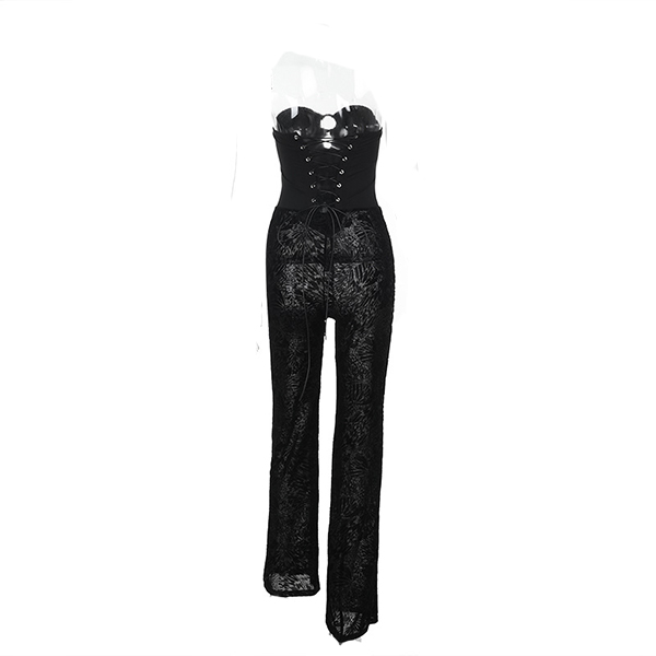 Sexy Strapless O-ring Front Straight-cut Lace Jumpsuit