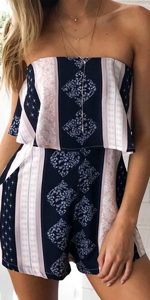 Strapless style,designed with chic printed pattern and off-shoulder detail.which enhances that feminine demeanor.