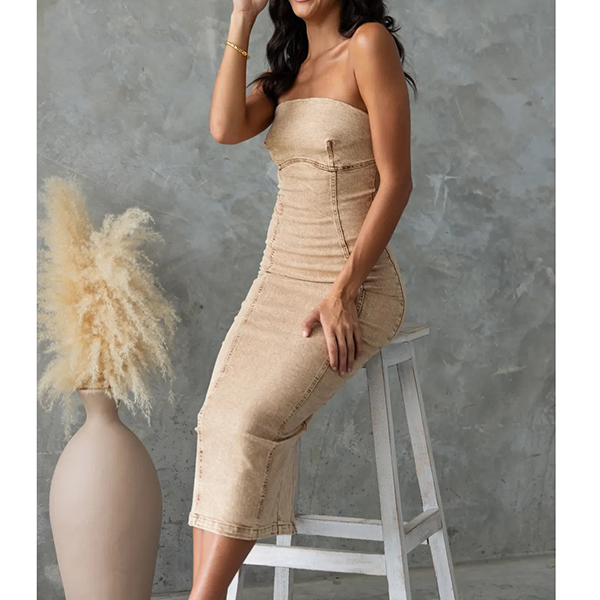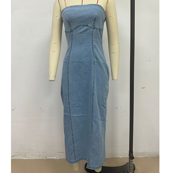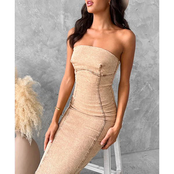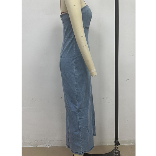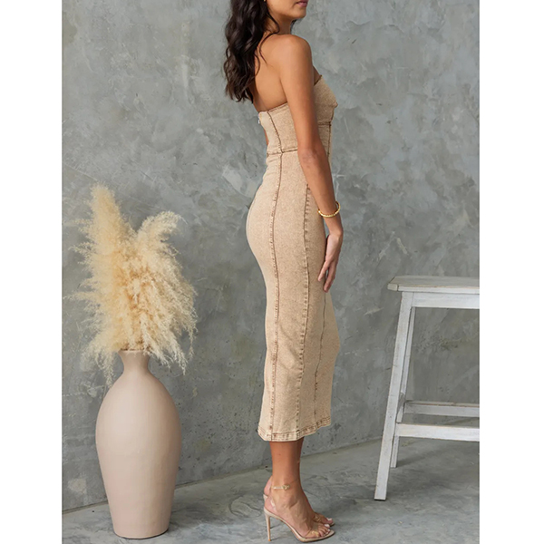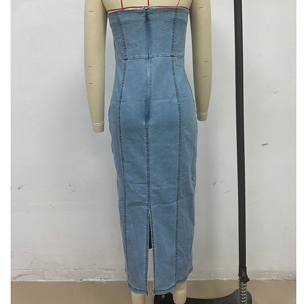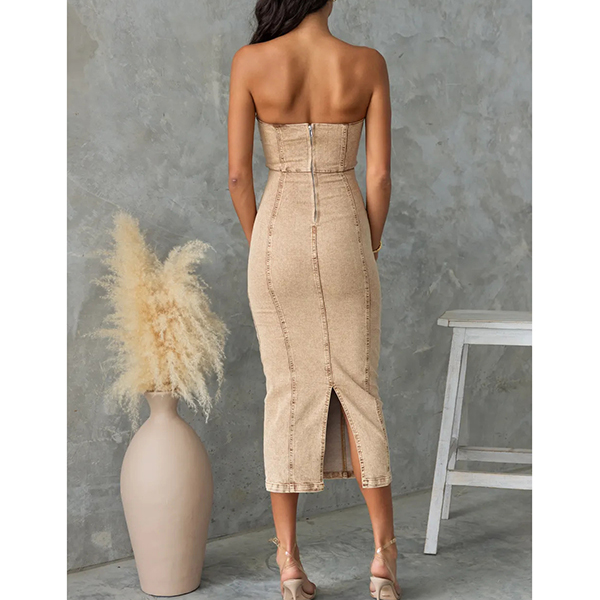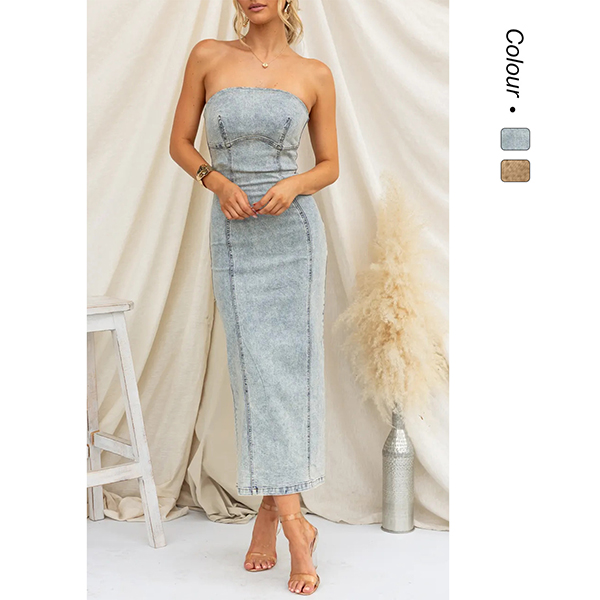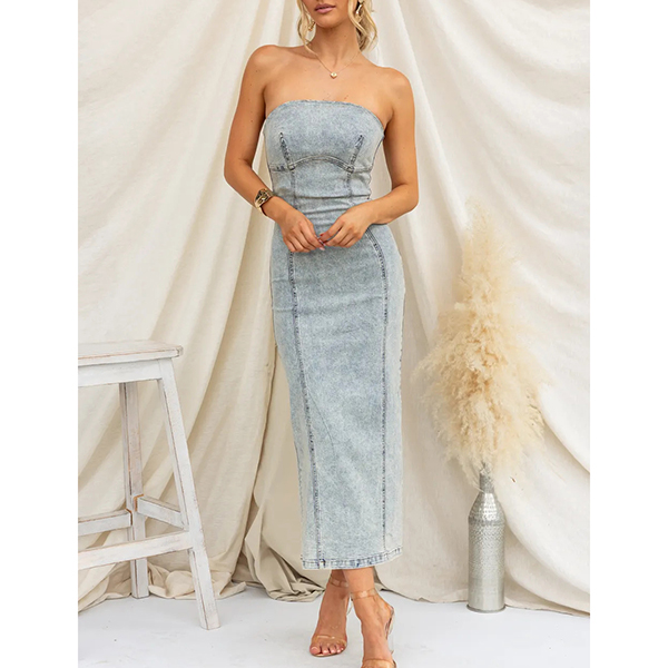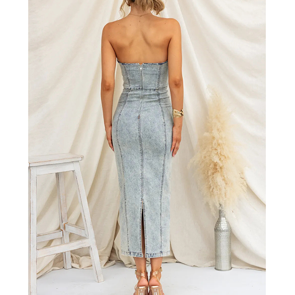 Sexy Strapless Old-washed Denim Bodycon Dress