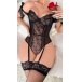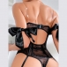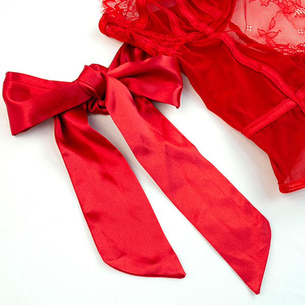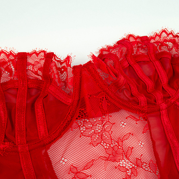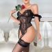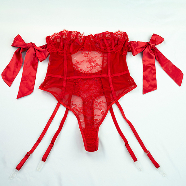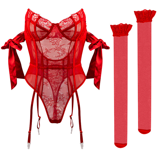 Sexy Strapless Push-up Self-tie Shoulder Strap Lace Lingerie Bodysuit with Gloves