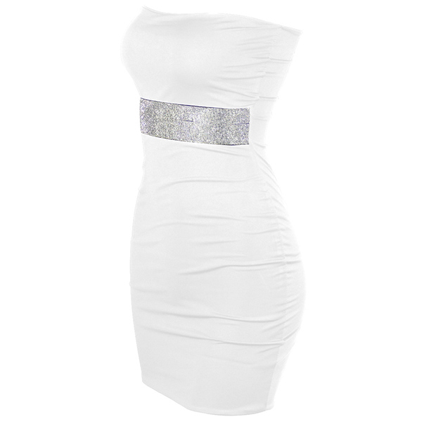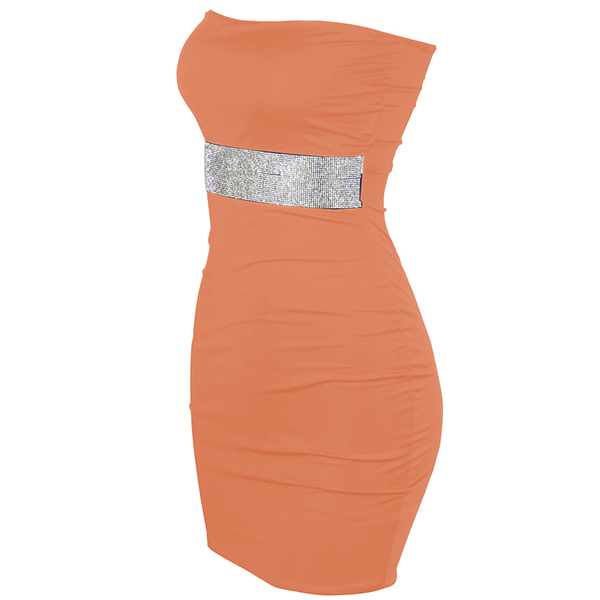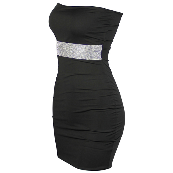 Sexy Strapless Rhinestone Spliced High Waist Slim Fit Dress(The size runs small)