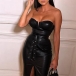Sexy Strapless Rivet Slit Artificial Leather PU Party Dress