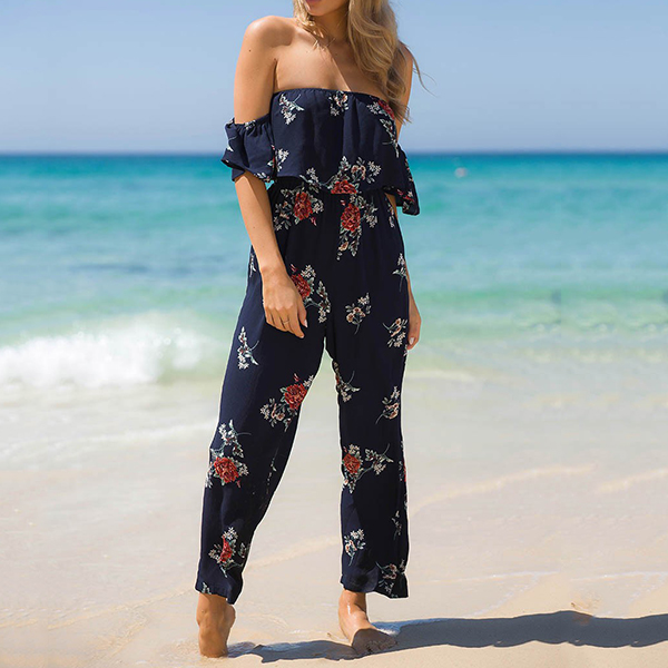 Wanna a sexy and charming beach style? Then you can count on this jumpsuit. Strapless style,accompanied with ruffle,