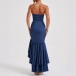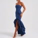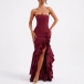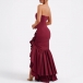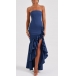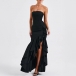 This sexy party dress features a strapless design, ruffle detailing along the side slit, and irregular hemline, creating a sultry and glamorous look. Pair this party dress with strappy heels and statement earrings for a chic and glamorous ensemble that is sure to turn heads.