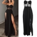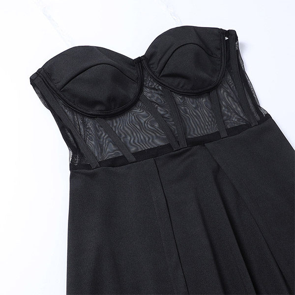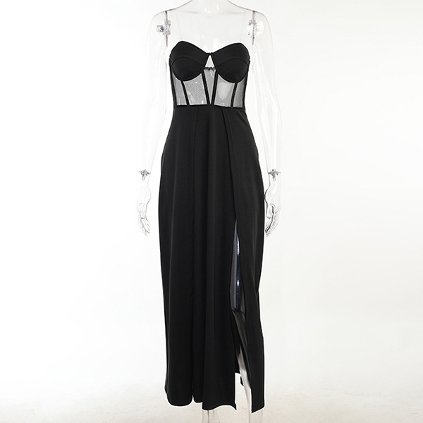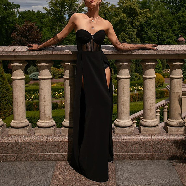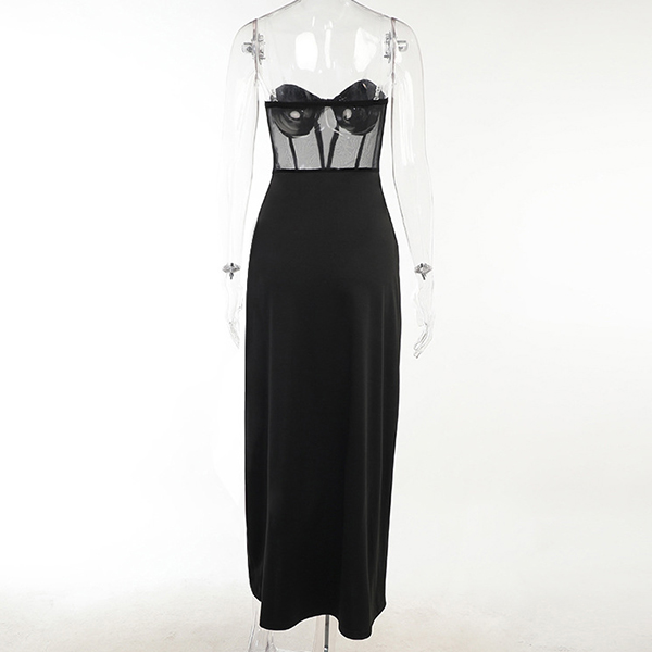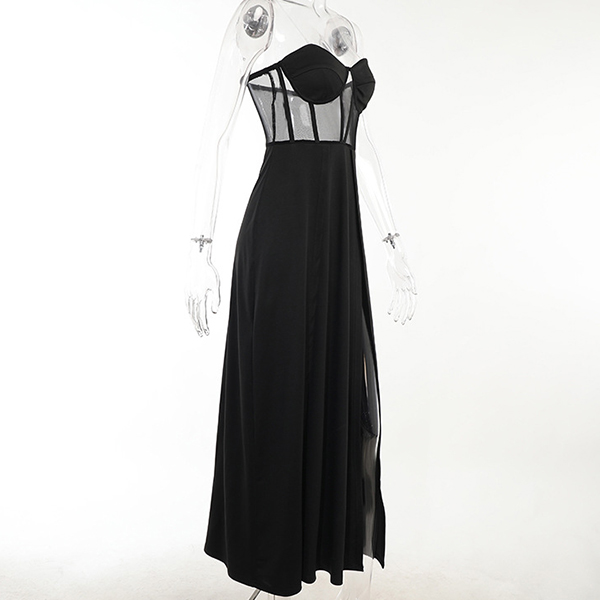 Sexy Strapless Sheer Gauze Spliced High Waist Slit Hem Party Dress