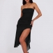 A sexy dress~The strapless neckline showcases your shoulders and collarbones, adding a touch of allure to the look. The side slit and ruched detailing create a flattering and curve-enhancing silhouette that will turn heads wherever you go. Perfect for summer wear~