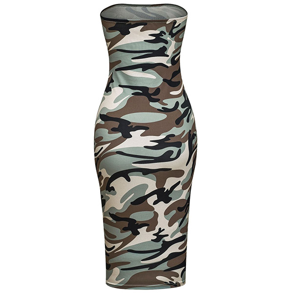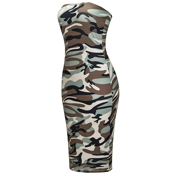 Sexy Strapless Slim Fit Camouflage Printed Dress