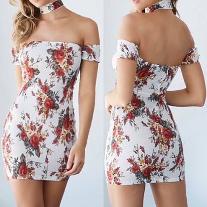 with a fit silhouette and decorated with vibrant floral print pattern,this dress can accentuate your seductive