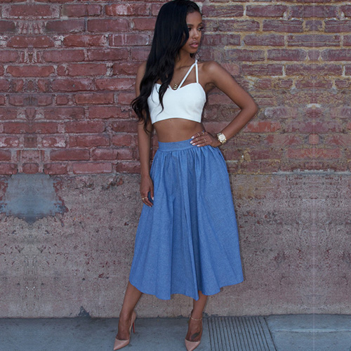Two- piece style, a sling bandeau and a- line dress matching them together, it is more attracting and charming,