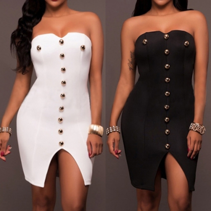 Wanna flaunt your sultry style and seductive curve? Then opt for this tight dress. Strapless style,with a slit