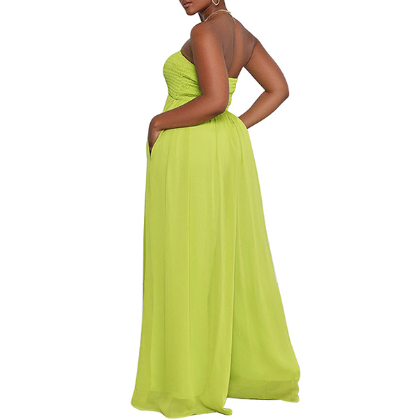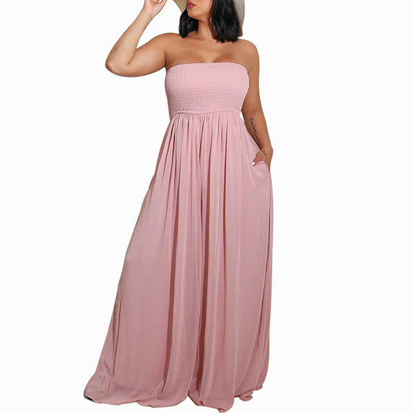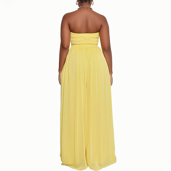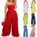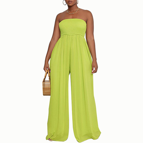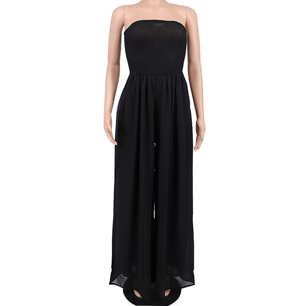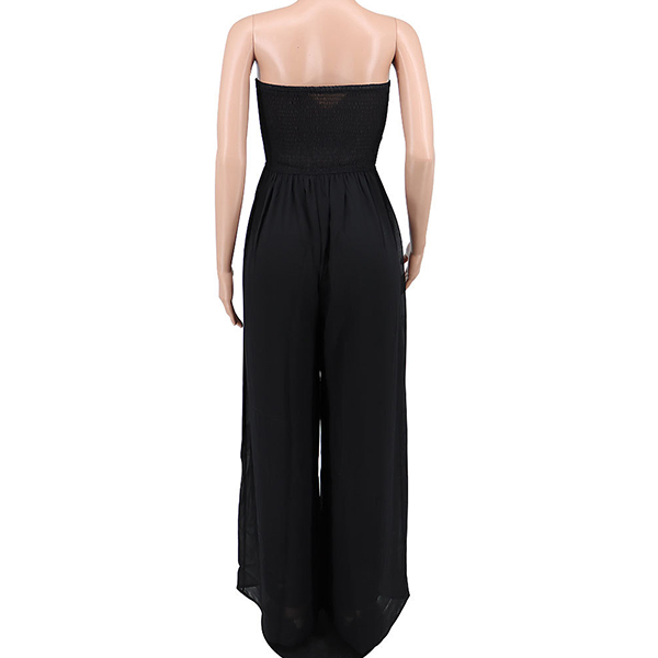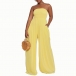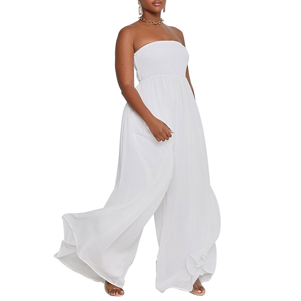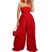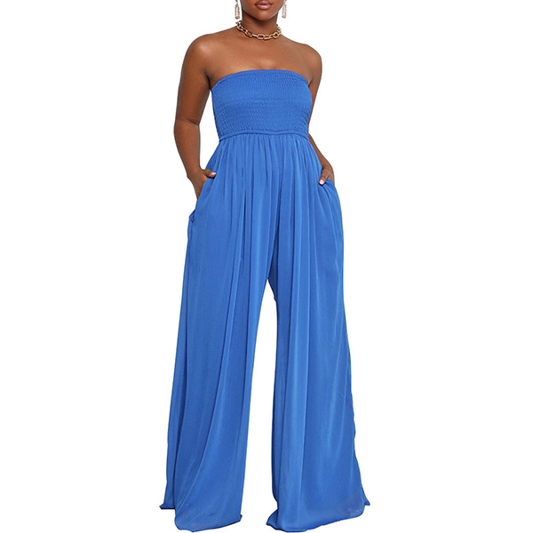 Sexy Strapless Smocked Bodice Wide-leg Jumpsuit