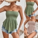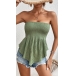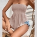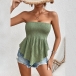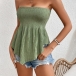 Sexy Strapless Smocked Irregular Hemline Shirt