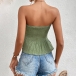 This shirt is designed to showcase your confidence and elevate your style. With its strapless design, it exudes a bold and sultry vibe. The smocked detailing adds a touch of elegance and ensures a flattering fit. The irregular hemline adds a unique and chic element to the overall look. Wanna have a try?