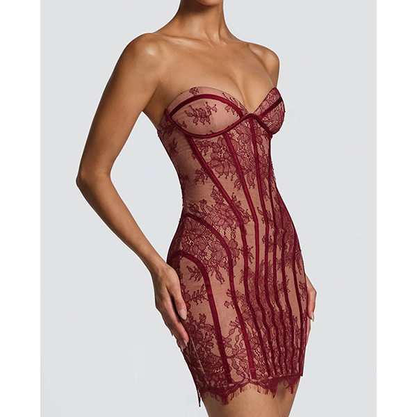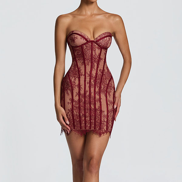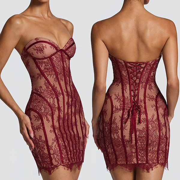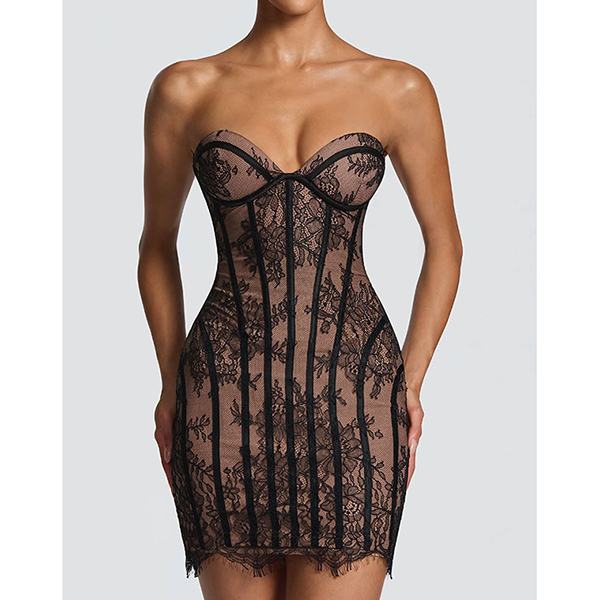 Sexy Strapless Sweetheart Neckline Lace Corset Bodycon Dress