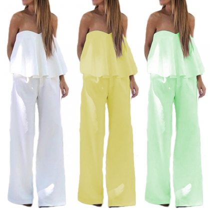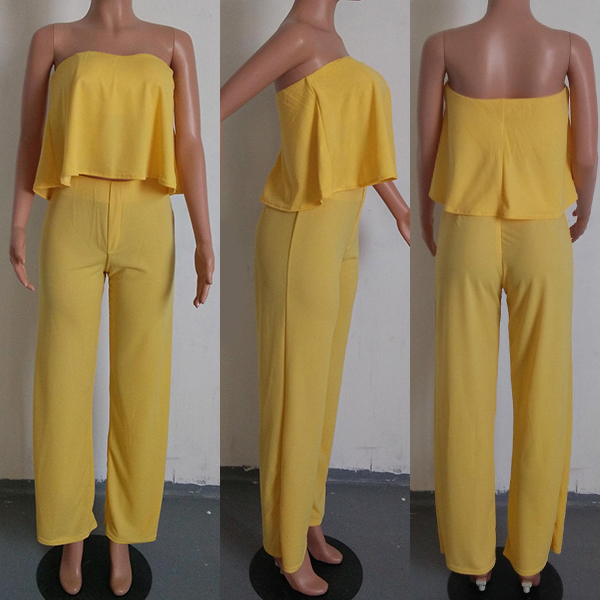 Wow,let your female charm and elegant temperament bloom in this two-piece set! Solid color style,including a strapless