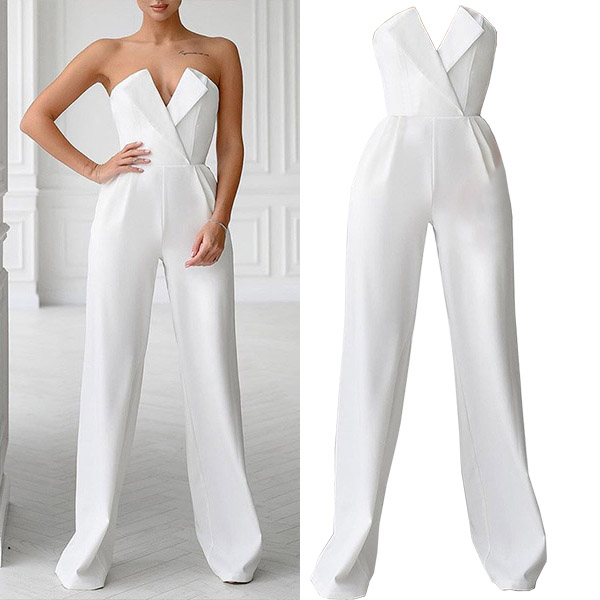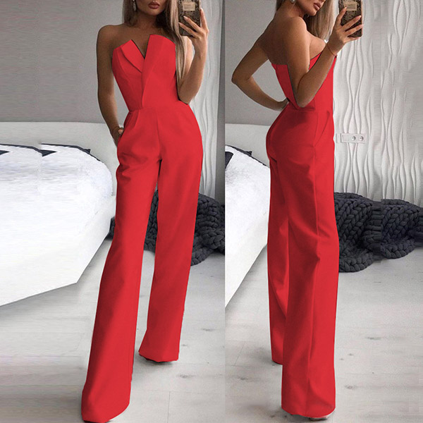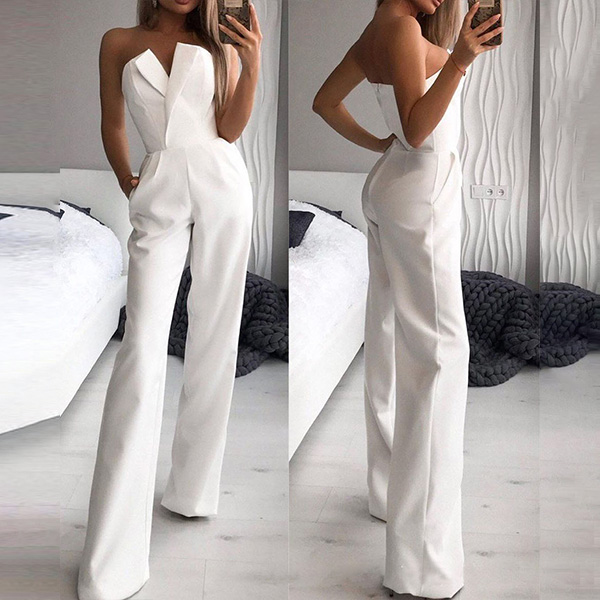 For your fancy events,you can trust in this jumpsuit to gain more eyes. Strapless style with v-neck design can make you look more stunning and charming. Solid color style,with high waist and a clean,fit silhouette,this piece also can portray your slender figure. Just matching with your sparkle necklace and sexy heels,then you can't be more amazing!