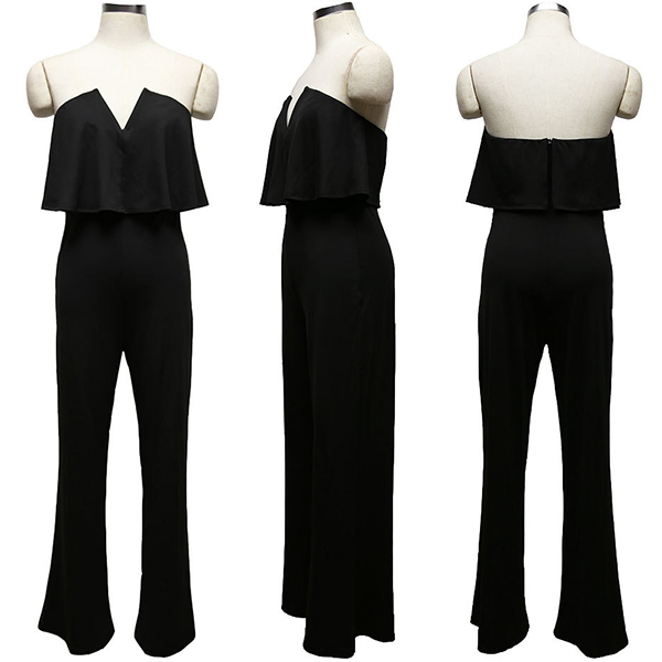 Wanna an elegant and charming party look? Then you can rely on this jumpsuit. Strapless style,finished with a v-neck,