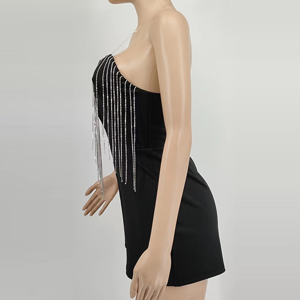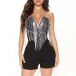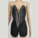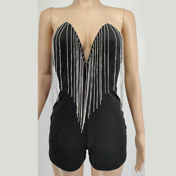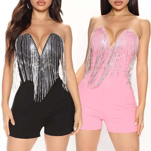 Featuring a plunging v-neckline, figure-hugging silhouette, and playful tassel detailing, this romper wonder is sure to turn heads wherever you go. Pair it with strappy heels and glam accessories for a head-turning ensemble.
