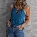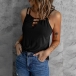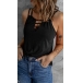 Sexy shirt in solid color, sleeveless, V-neck with cutout details are flattering and the cutouts add a touch of sultriness.