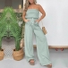 This jumpsuit is a show-stopping piece that combines style and comfort effortlessly. The strapless design exudes femininity and sophistication, while the elastic waist ensures a comfortable and flattering fit. The stripe print adds a trendy and eye-catching element to the jumpsuit, perfect for making a statement. Wanna have a try?
