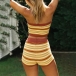 Sexy Striped Bandeau Top + High Waist Shorts Two-piece Set