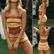 Playful with a touch of flirty vibes,this two-piece set is sure to help you gain more eyes. The stripe element design makes it look so stylish and popular. Including a bandeau top and a high waist shorts,this two-piece set can showcase your perfect figure while it exudes your style and charm.