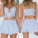 Sexy, chic and fashion, your closet should have this set! Striped style, with front crossover, sleeveless
