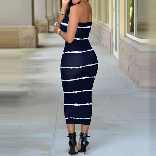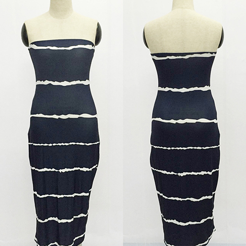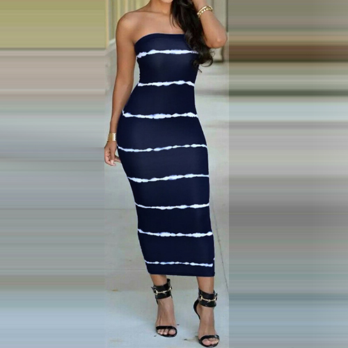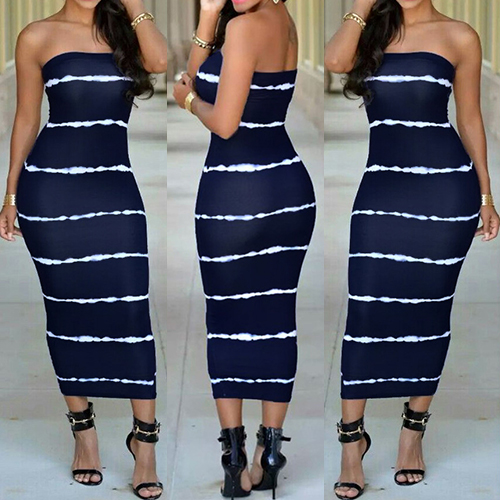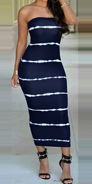 you to wear on in summer. Last but not least, this piece of bodycon maxi dress is printed with dark blue&white chevron prints.