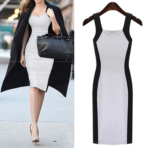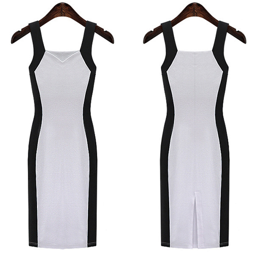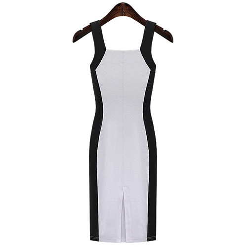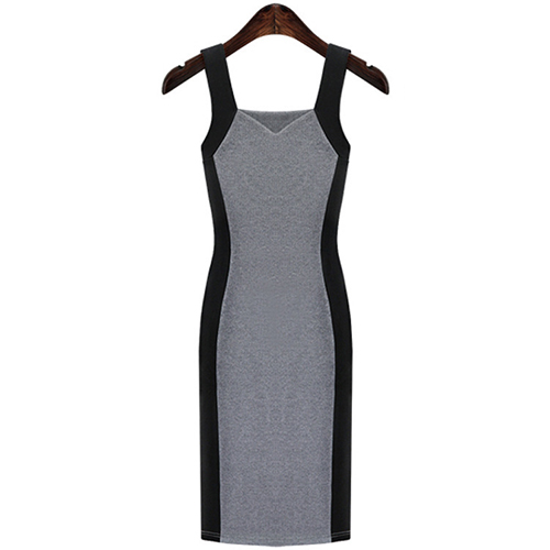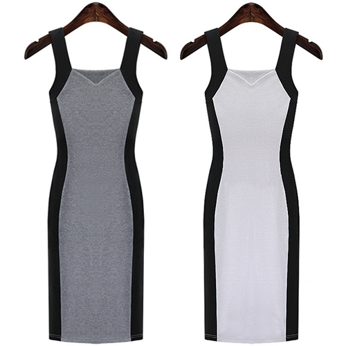 Sexy Style Sleeveless V-Neck Colorblocked Bodycon Dress