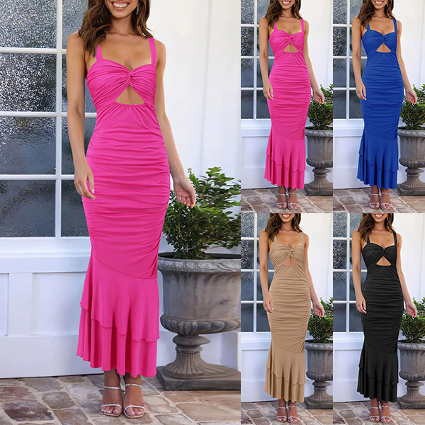 This sexy dress features a sweetheart neckline, front cutout, ruched detailing, and a fishtail hem, it is perfect for special occasions and formal events.