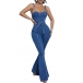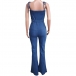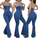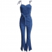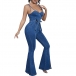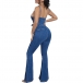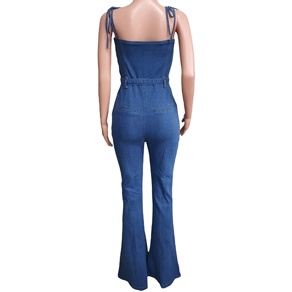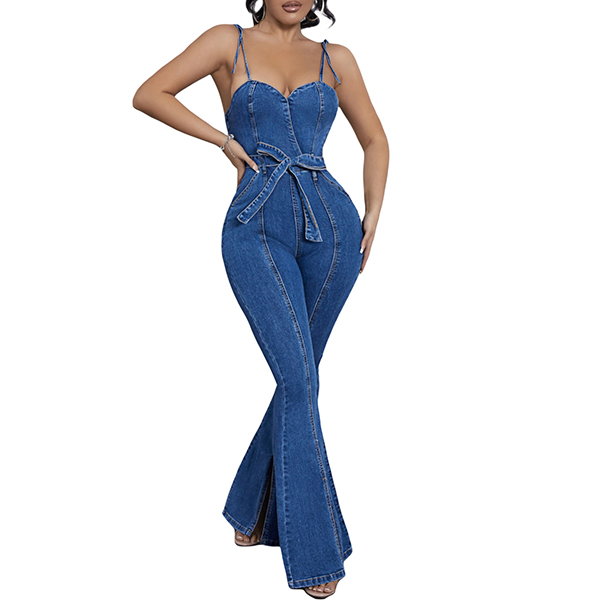Sexy Sweetheart Necklace Self-tie Shoulder Strap Front Slit Wide-leg Denim Jumpsuit with Belt