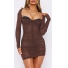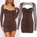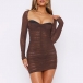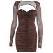 Sexy Sweetheart Neckline Gauze Long Sleeve Backless Ruched Bodycon Dress