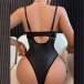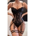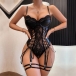 Sexy Sweetheart Neckline Lace-up Lace Spliced Artificial Leather PU Lingerie Bodysuit
