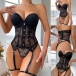 Sexy Sweetheart Neckline Lace-up Lace Spliced Two-piece Lingerie Set